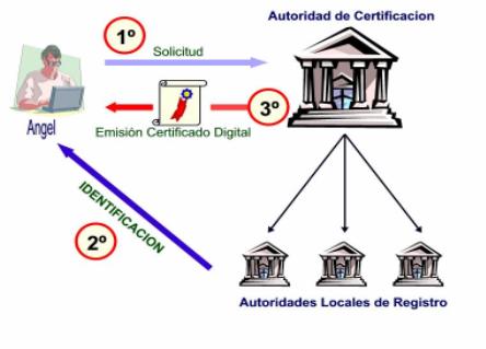 La utilización del par de claves (privada y pública) para cifrar y descifrar los mensajes permite tener la certeza de que el mensaje que B recibe de A y que descifra con la clave pública de A, no ha sido alterado y proviene necesariamente de A. Pero ¿quién es A?.